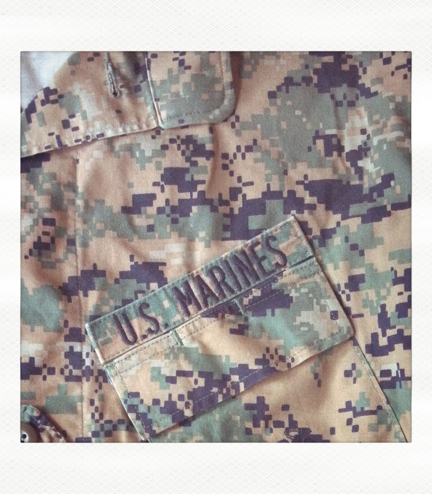 Working with Jessica on the custom design was exciting, but seeing the finished product brought tears to my eyes! Jessica kept so much of the original style by using the same covered buttons, pockets, name plate, USMC emblem and even the original inside tags. The style we choose was perfect for winter and summer: Katie is able to wear a turtleneck and leggings when it is cold and just the dress when the weather warms up.